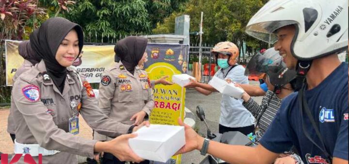 Polwan Polda Kalbar Berbagi Takjil Ramadan